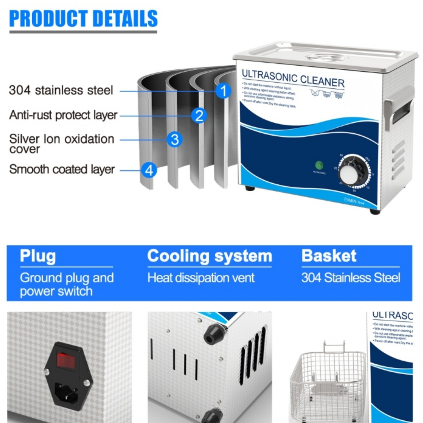 Adjustable Time: Customizable cleaning time ranging from 1 to 30 minutes, suitable for various items.